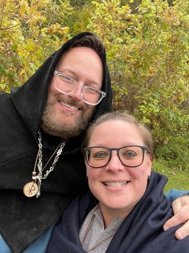 We remember Hoogin, the white collared/brown African Raven, companion and symbol of watchfulness and wisdom. Since 2019, he allowed the Michigan Viking Alliance to call him friend, a sometimes-quiet presence bound to our gatherings and our shared path. Daphne Longstocking of the Washing Well Wenches was his trusted guardian and companion. Hoogin carried more than just feathers, he carried our spirit, loyalty, and the old stories that remind us why we gather as kin.