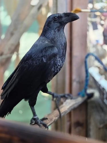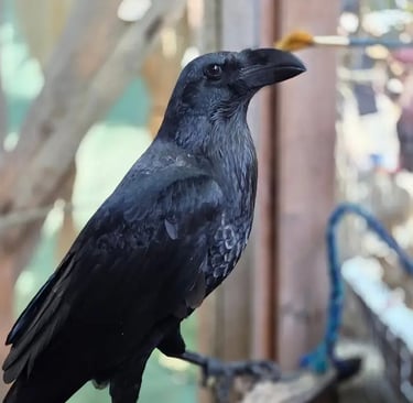 Hoogin is a white collar/brown raven rescued by the washing wench “Daphne longstockings” in 2019. MVA is “Viking daycare” during the Michigan Renaissance Festival in Holly MI, because Ravens are constant interaction and constant care (Hoogin is constant trouble) he comes to be with his Viking family during the weekends. His personality says he’s secretly best friends with Loki instead of Odin. This spoiled feather baby participates in “The birds of prey” show where he gets to show off for the public.